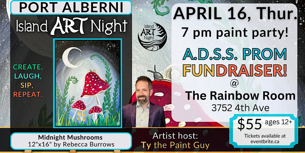 Get ready for a fun evening supporting the Alberni District Secondary School 2026 grads! This in-person event is all about celebrating creativity and raising funds for PROM. Come mingle, enjoy creating this fun painting with Ty the Paint Guy! Don’t miss out on this awesome community ART Night.