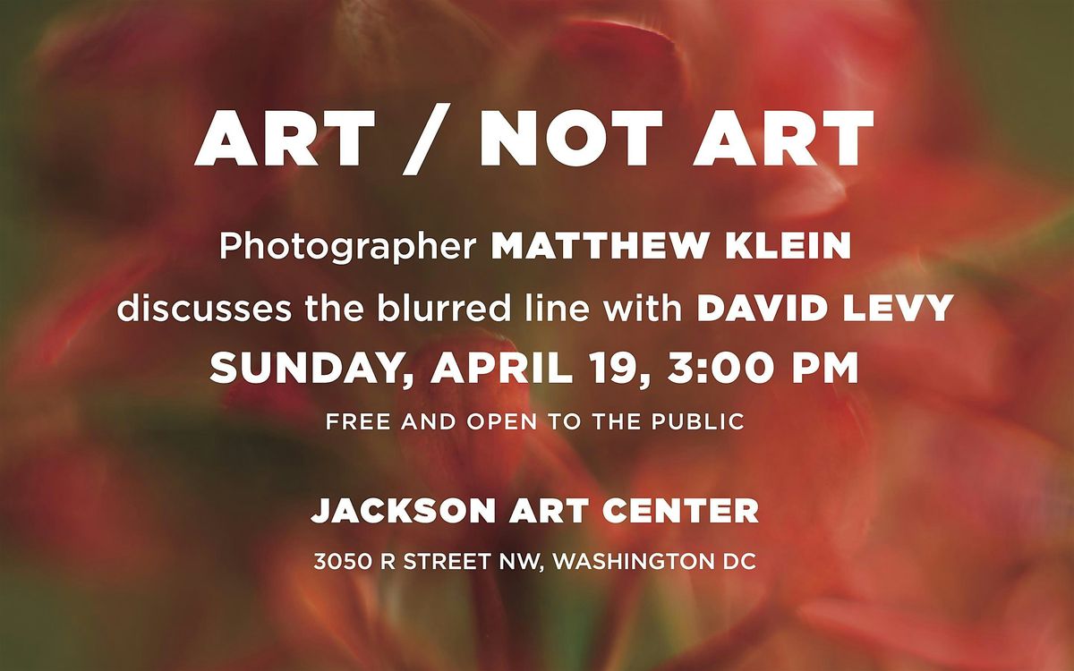 Come check out the Art/Not Art event at the Jackson Art Center! Whether you're an art lover or just curious, this FREE in-person event is the perfect chance to gain an insider's view of what is considered fine art and what is not. Matthew Klein is an award winning photographer who colalborated, among others, with the famous graphic designer, Milton Glaser. Matthew Klein will discuss his views based on decades of experience in the commerical and fine art photography fields. Facilitating the conversation is David Levy, former Director of the Corcoran and former CEO of Parsons School of Design.