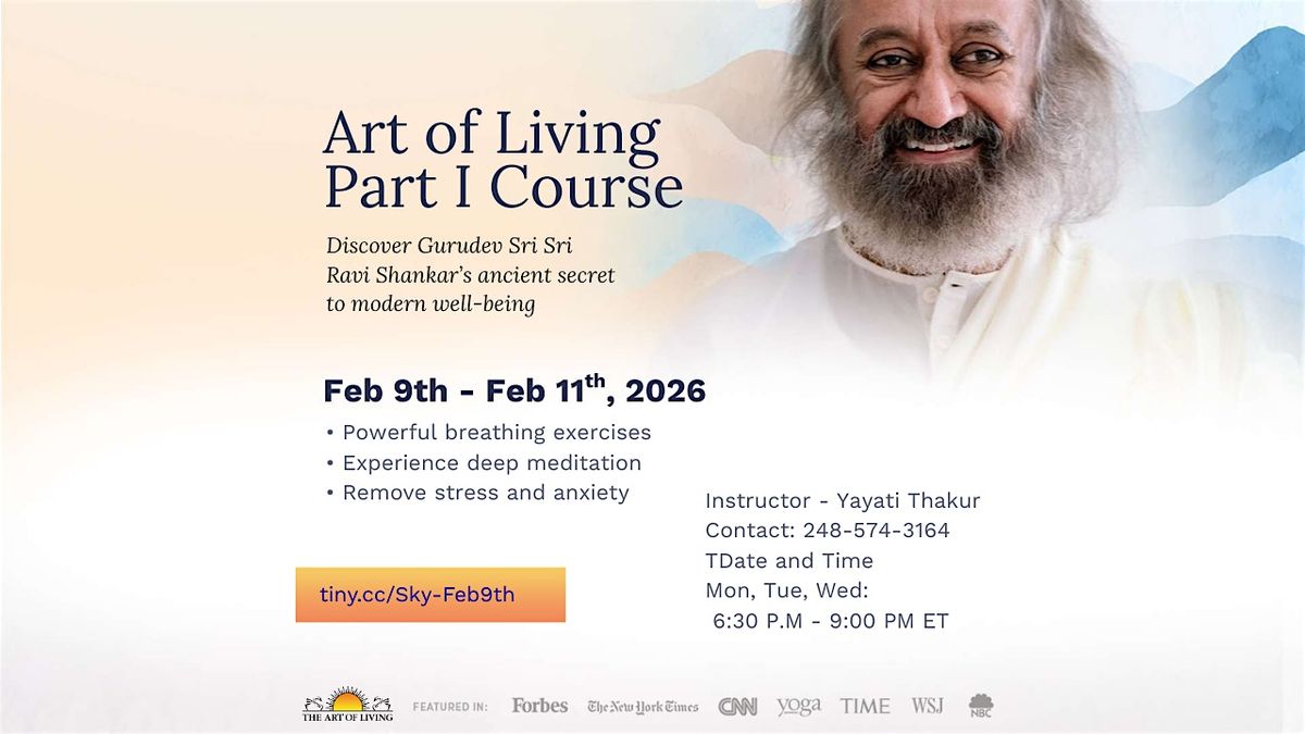 Join us for the Art of Living Part-1 Program, a globally recognized wellness course designed to help you reduce stress, increase energy, and experience inner calm.