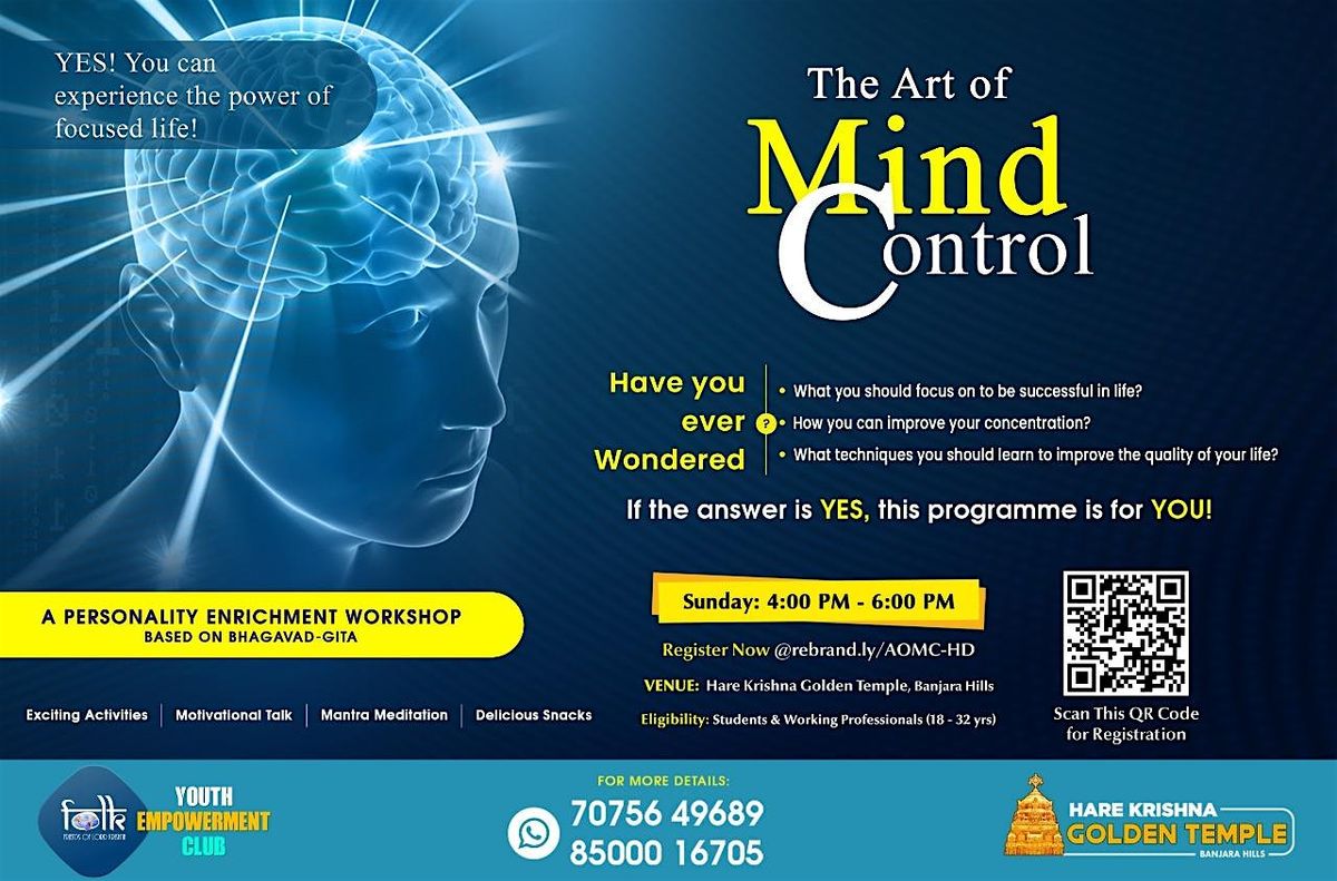 This workshop ~ Art of Mind Control will help you Harness the Untapped Potential of your Mind by techniques of Mind Control!