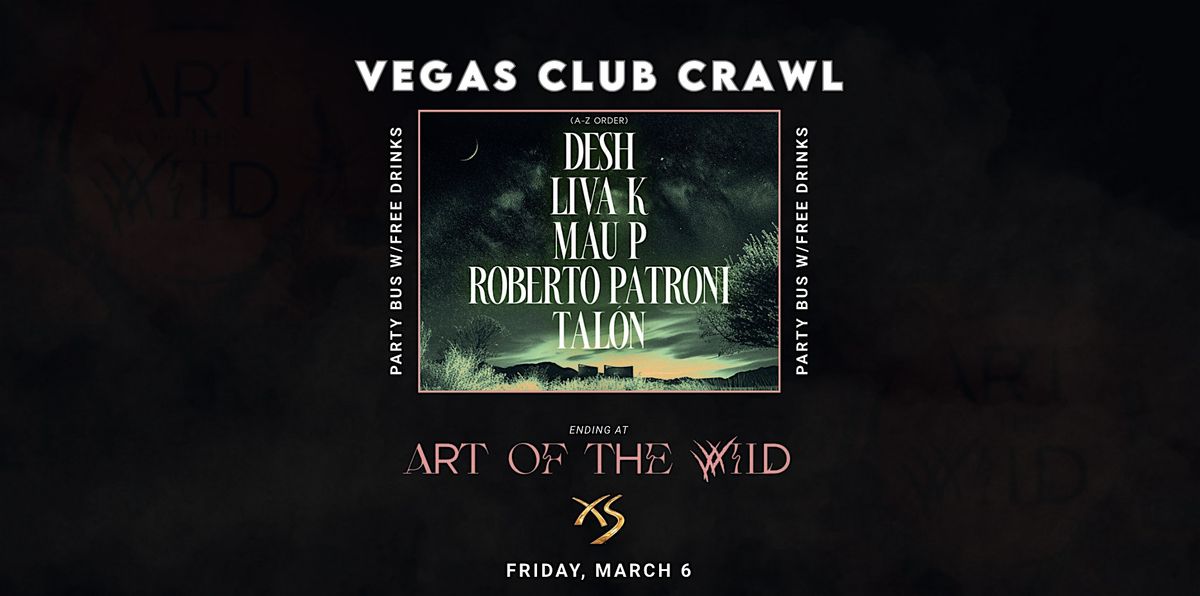 We’re hitting multiple top venues throughout the night — and closing it out at Art of the Wild Festival at XS Nightclub as our last stop.