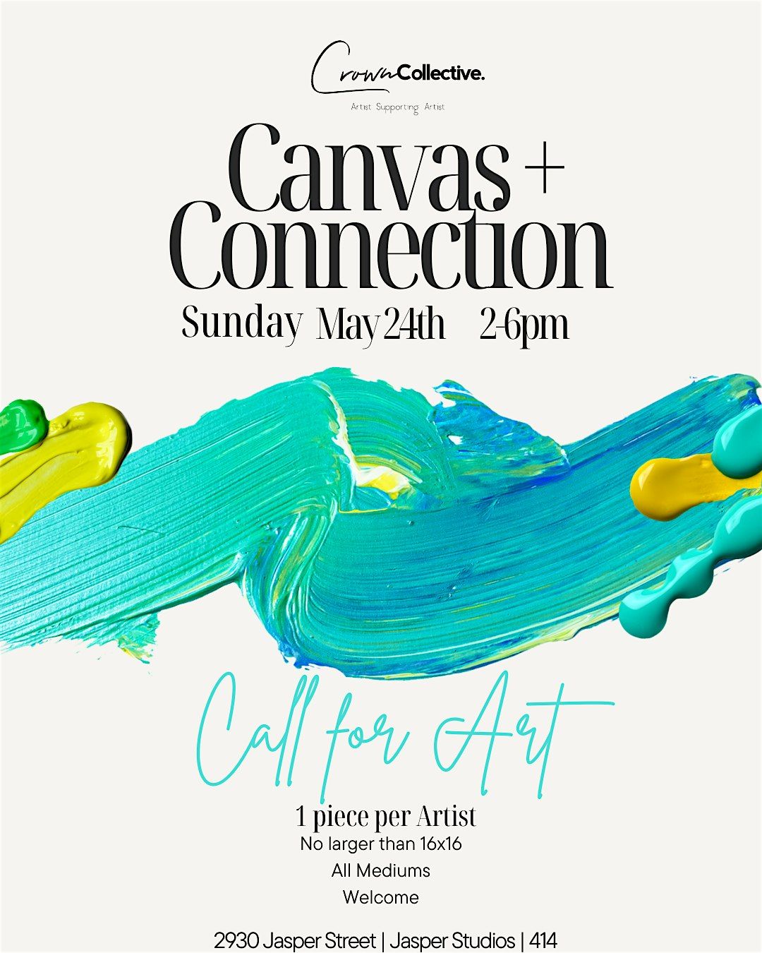 At Crown Collective, our mission is to create space for artists to be seen, supported, and valued. This is an artist-first show — all participating artists keep 100% of their commission, with a small hanging fee to help us continue building opportunities like this.