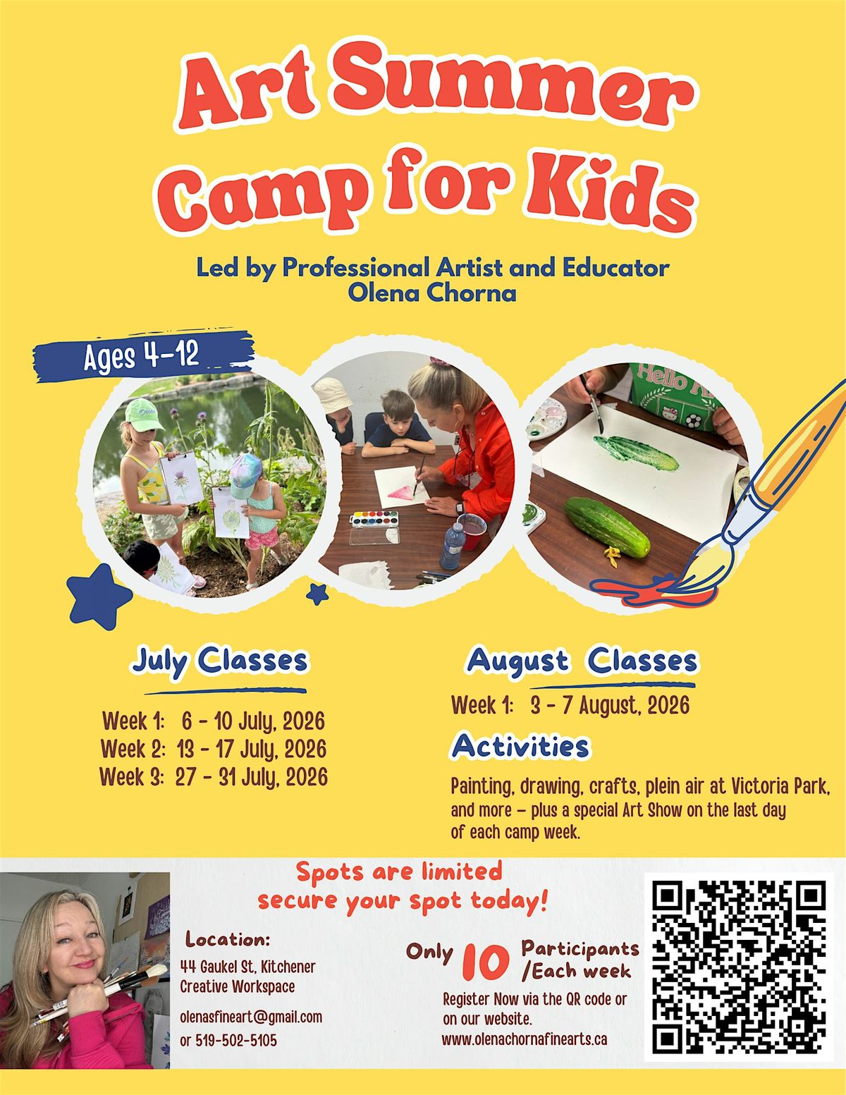 Weather permitting, campers will also enjoy outdoor activities in Victoria Park, Kitchener, such as nature walks, games, and sketching sessions. These activities provide inspiration from the park's beautiful surroundings and a chance to enjoy fresh air and playtime.