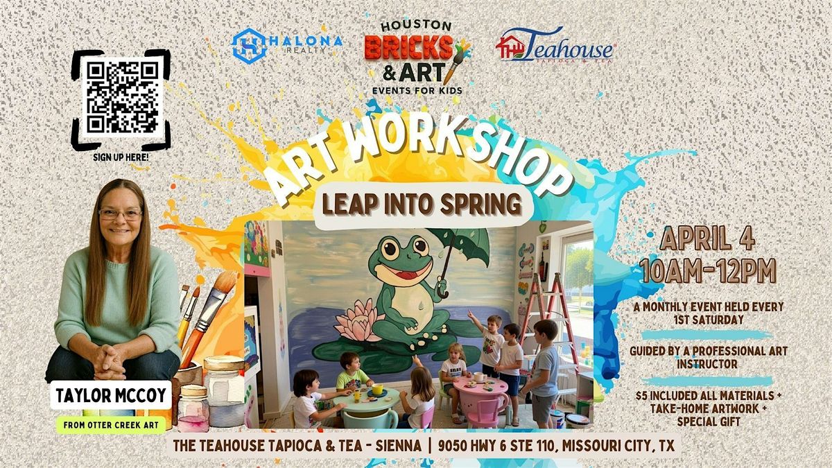 Join us on Saturday, April 4th for our monthly kids art workshop featuring Rainy Day Frog — where young artists will paint their own whimsical frog holding an umbrella on a lily pad, creating a cheerful, rainy-day canvas masterpiece to take home!