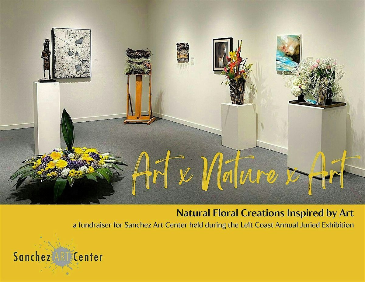 Art x Nature x Art is a joyful celebration of art and spring, featuring the Left Coast Annual Juried Exhibition paired with natural and floral creations. Local floral designers, guided by Floral Curator Nancy Victoria Davis from Shelldance Gardens, draw inspiration from selected artworks in the exhibition. Their floral designs beautifully complement and enhance the original artworks in surprising and creative ways.