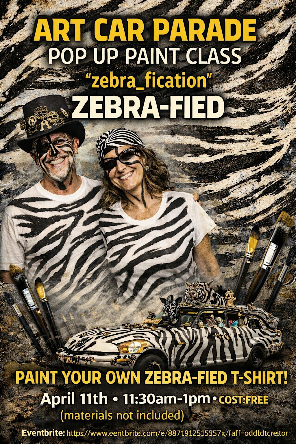 Ready to unleash your ZEBRA ?Join us for an in-person paint party right on Allen Parkway! This pop-up event is all about finding your inner Zebra Pirates,connecting with fellow pirates, and making some cool zebra-inspired T-SHIRTS.This interactive paint party is FUN for all ages. Materials additional cost. Once you've created your masterpiece, jump into The stockade for a commemorative selfie with live parrots and Grab your friends and BUY A TICKET TO RIDE IN THE 2pm PARADE and make memories together!