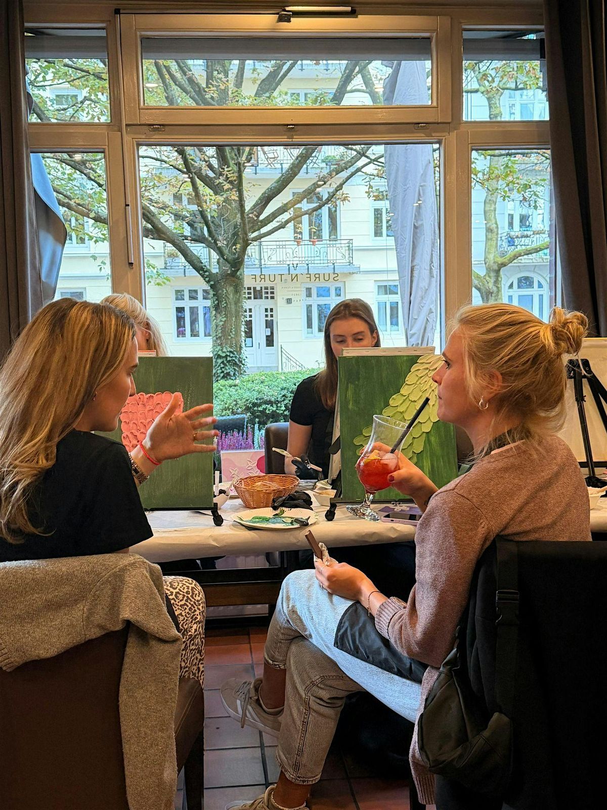 Zwischen einem prickelnden Willkommensdrink und kleinen Leckereien entsteht in lockerer Runde dein ganz eigenes Kunstwerk, das du später mit nach Hause nehmen kannst - und das alles im Ticket enthalten. 🥂🎨
