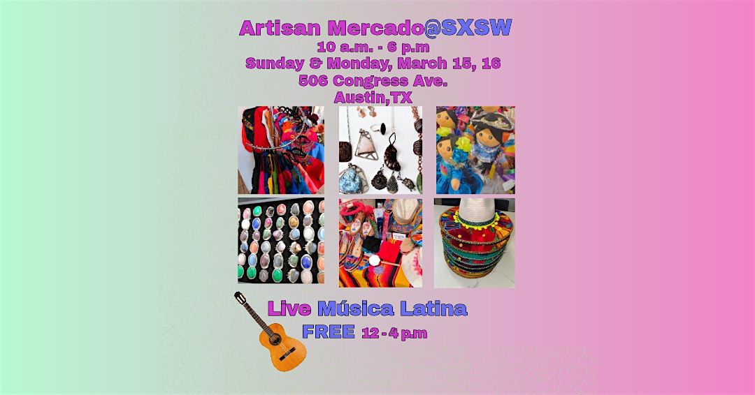 AUSTIN,TX-Tourists and locals can find handcrafted souvenirs at the Artisan Mercado@SXSW, a Latin American art and arts and craft market, at 506 Congress Ave. from 10 a.m. to 6 p.m. Sunday and Monday, March 15 - 16.