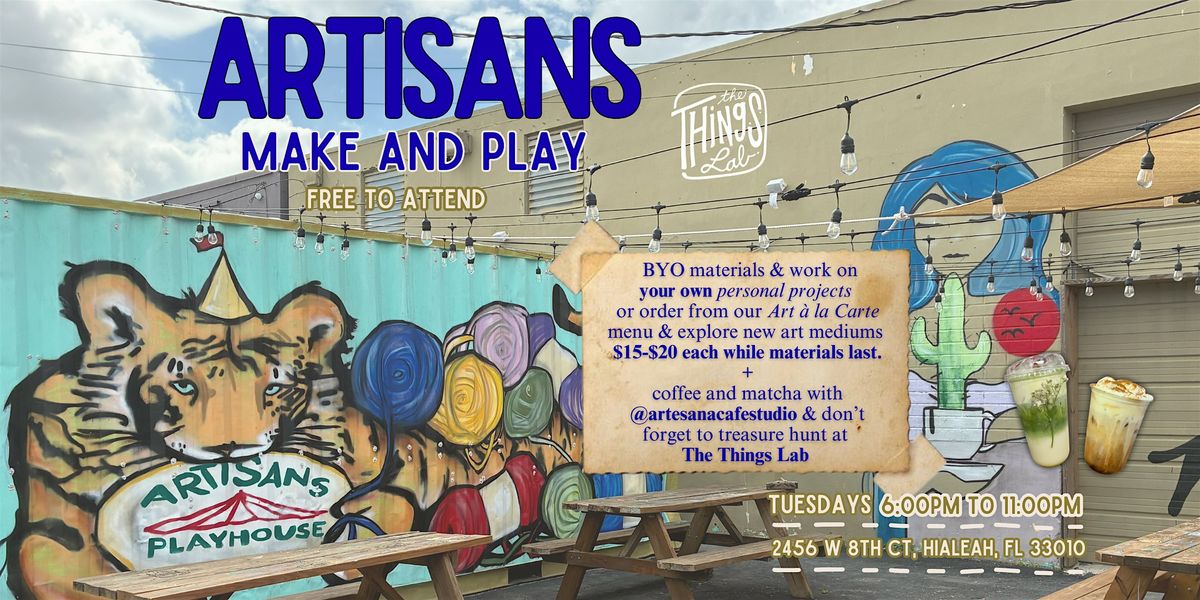 EVERY TUESDAY 6-11pm come to Artisan's Playhouse for MAKE and PLAY!