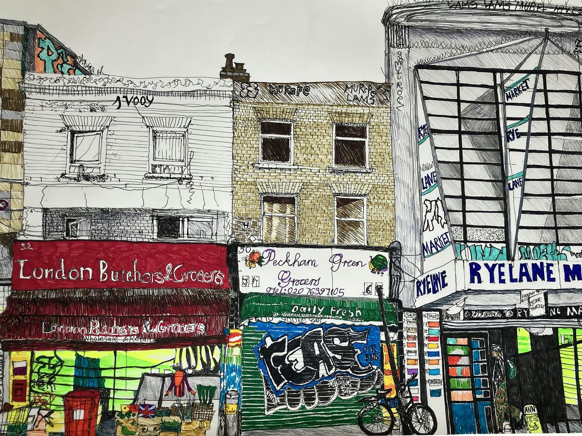 Join Jemima Broadbridge for a live drawing demo capturing South London streetscapes, shopfronts, and urban details. Jemima will show how she builds lines, texture, and rhythm using Derwent Line Maker pens and Derwent Watercolour pencils. Watch her observational techniques in real time and see how expressive, descriptive drawing brings familiar urban scenes to life. Accessible for beginners and experienced artists alike.