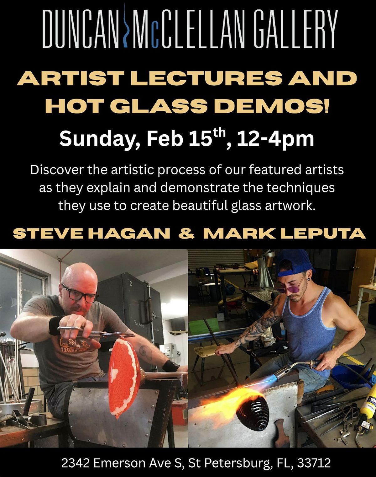 We invite you to join us on February 15th to hear from these inspiring artists and to witness them work in our hotshop. Lectures begin promptly at noon, followed by hot glass demos until 4 pm. This event is free and open to the public of all ages!