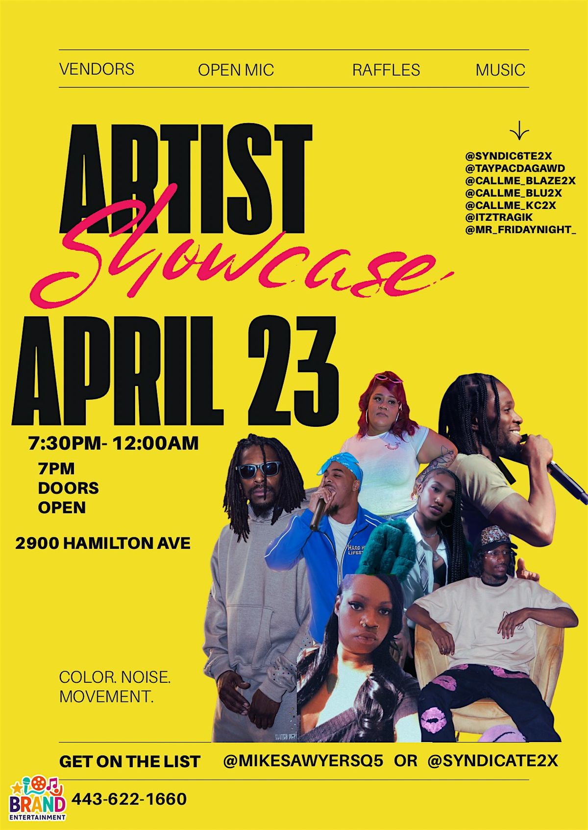 Artist Showcase on April 23, 7:30 PM–12 AM at 2900 Hamilton Ave, featuring vendors, open mic, raffles, and live music.About this Event