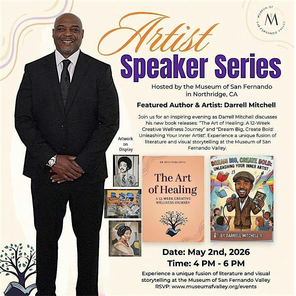 Experience a unique fusion of literature and visual storytelling at the Museum of San Fernando Valley. We are honored to host Darrell Mitchell II—publisher, griot, and artist—for an insightful installment of our Artist Speaker Series.