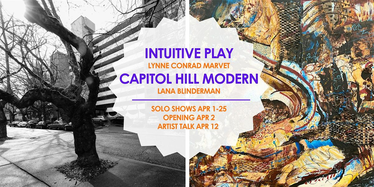 April brings two parallel solo shows to CORE Gallery: Intuitive Play - new mixed media and photography by Lynne Conrad Marvet and Capitol Hill Modern - architectural photography of Mid-Century Modern apartment buildings on Capitol Hill by Lana Blinderman. Join Lynne and Lana on Sunday, April 12 for a casual talk about our work, processes and the Capitol Hill Modern project (with Historian Tom Heuser.)