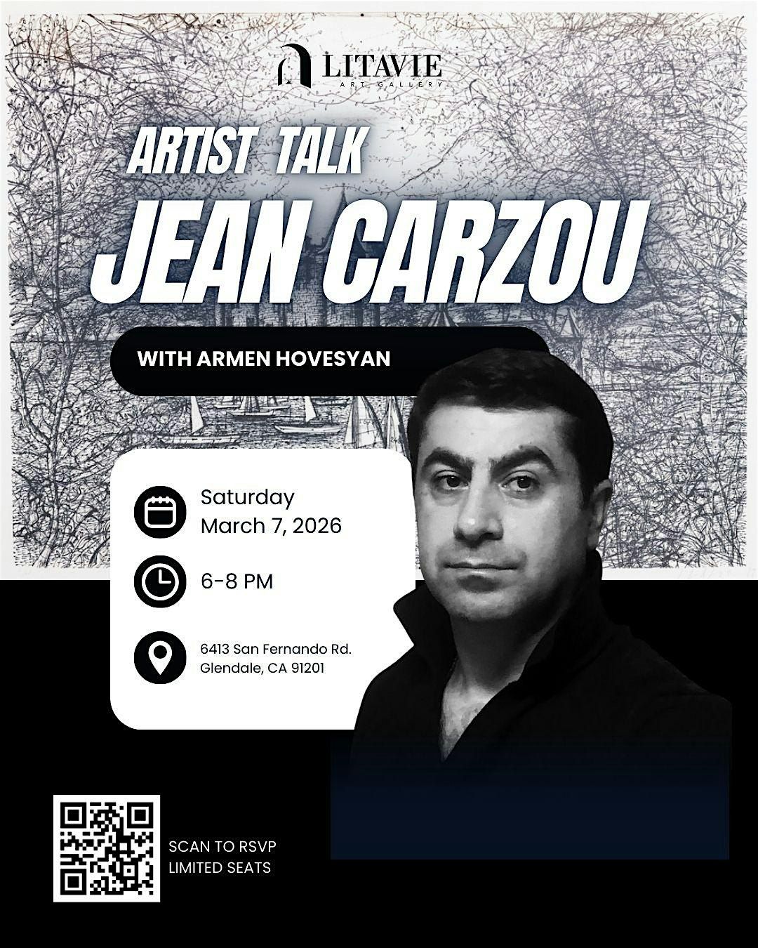 Join us for an Artist Talk on Jean Carzou with Armen Hovsepyan at Litavie Art Gallery, Sat Mar 7, 6–8PM.
