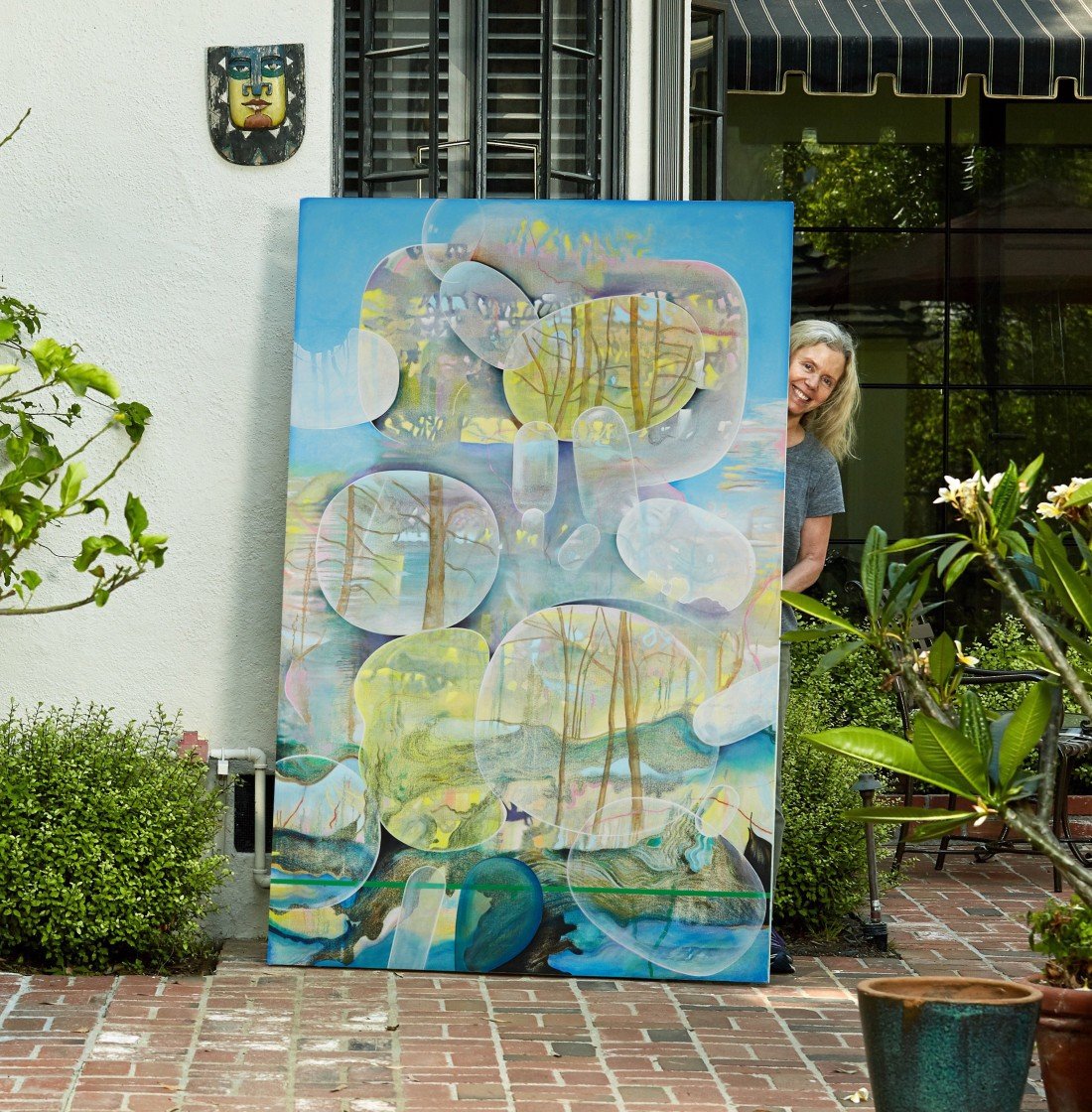 Steinberg paints to preserve the memories of her past reflecting love and longing for the landscape of her childhood in Canada. She begins by making complicated marks across the canvas with oil paint. From this mass of shapes more specific images begin to emerge that guide Steinberg toward an overall composition. Certain shapes are left abstracted while others are transformed into recognizable figures: the outline of a house or the dense treeline of a snowy forest. Steinberg captures the likeness of her home in Ontario while still allowing the image to be transformed by her imagination. This process lends an expressive quality to Steinberg’s work allowing the viewer to glimpse the layering of emotion and memory in each scene.