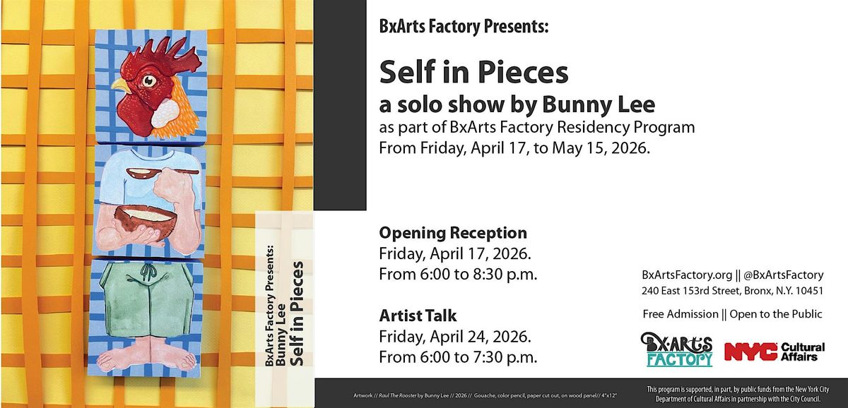 Join us for the artist talk with Bunny Lee about her solo show “Self in Pieces." A gathering of fragments, memory, emotion, and imagination, woven together through painting, wooden forms, and collage. Each work explores a different layer of self: seeing, expressing, accepting. This show invites you to slow down, reflect, and consider the ways you, too, are piecing yourself together.
