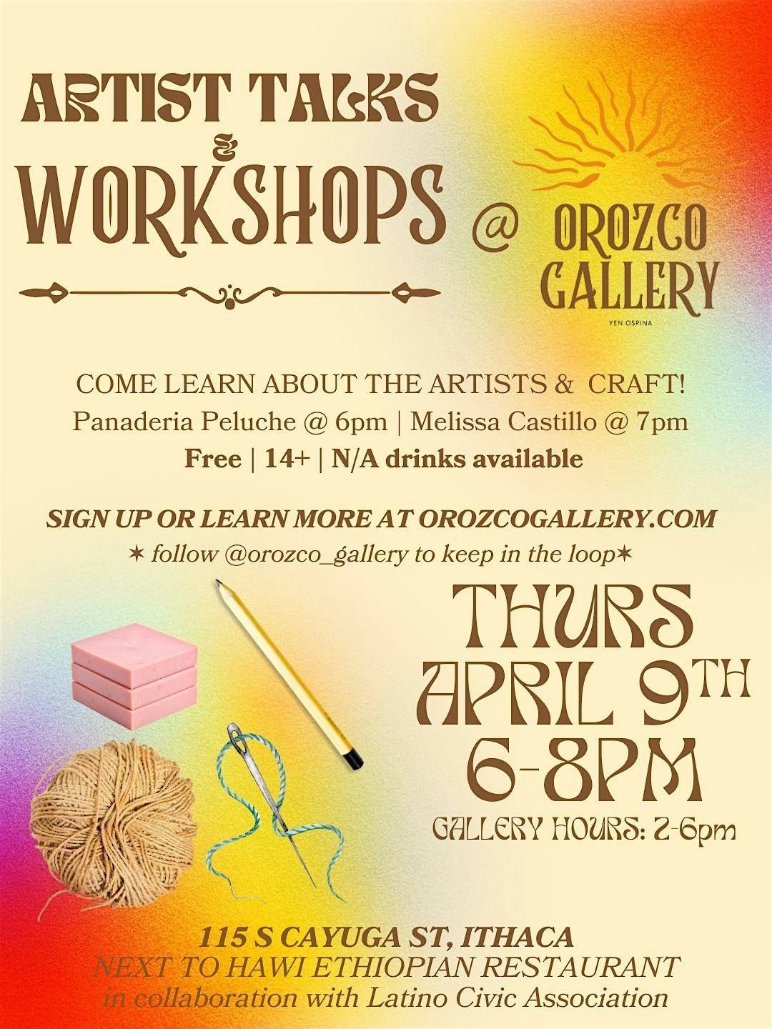 Curated by Yen Ospina as part of Orozco Gallery’s month-long pop-up, this in-person artist talk pairs storytelling with a hands-on mini workshop. Learn directly from artists and explore creativity together.