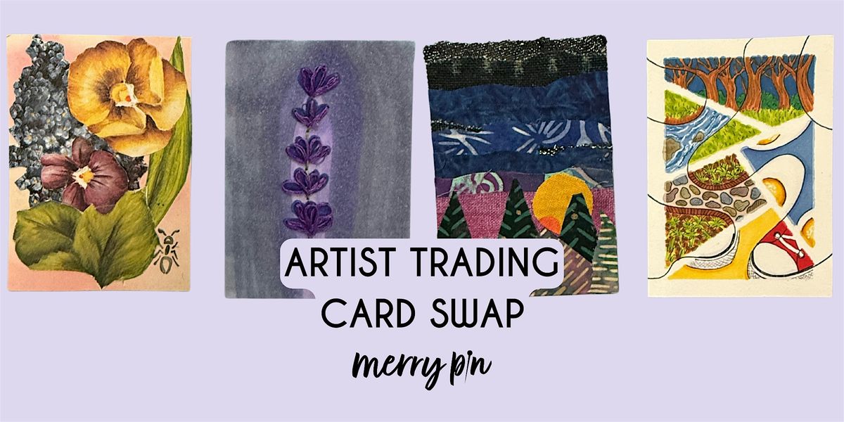 Join us for an Artist Trading Card (ATC) swap! ATCs are miniature works of art made on 2.5x3.5 inch cards that are meant to be traded, swapped, or given away. Artist Trading Cards at Merry Pin are available for purchase here (regular paper) and here (watercolor paper).