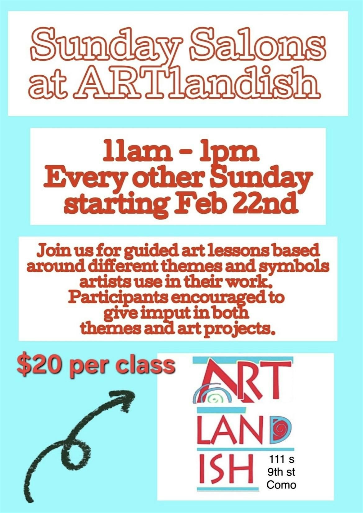 Buy tickets here for Artlandish Sunday salons that will happen every other Sunday starting February 22. Indicate the date you are attendingAbout this Event