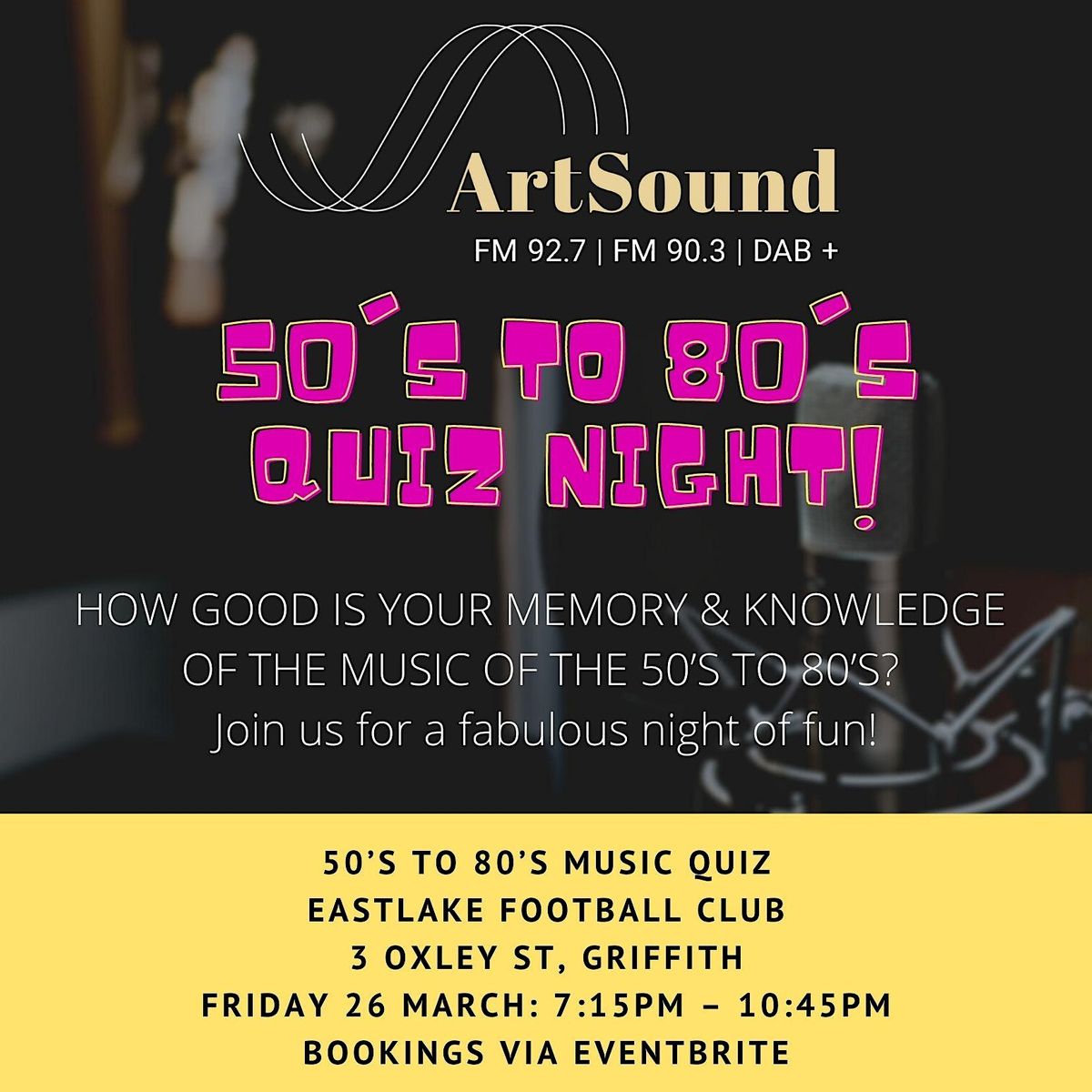 Following the sell-out success of last year’s music trivia night, we have another fabulous fun quiz night lined up for you on Friday 17 February at the Eastlake Football Club at Kingston, commencing at 7:00pm. A host of our popular Senior Memories Hour program, Brian Leonard, will once again put on his Quizmaster’s hat and test your knowledge of the popular hits of the 1950's, 60's, 70's, and 80’s.