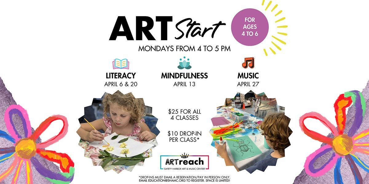 $25 is for all ARTstart programs throughout April: April 6, 13, 20, & 27. If you prefer to join us as a drop-in, please email [email protected] to reserve a spot and pay $10 when you arrive for the class. Space is limited, reservation is required as we will sell out!