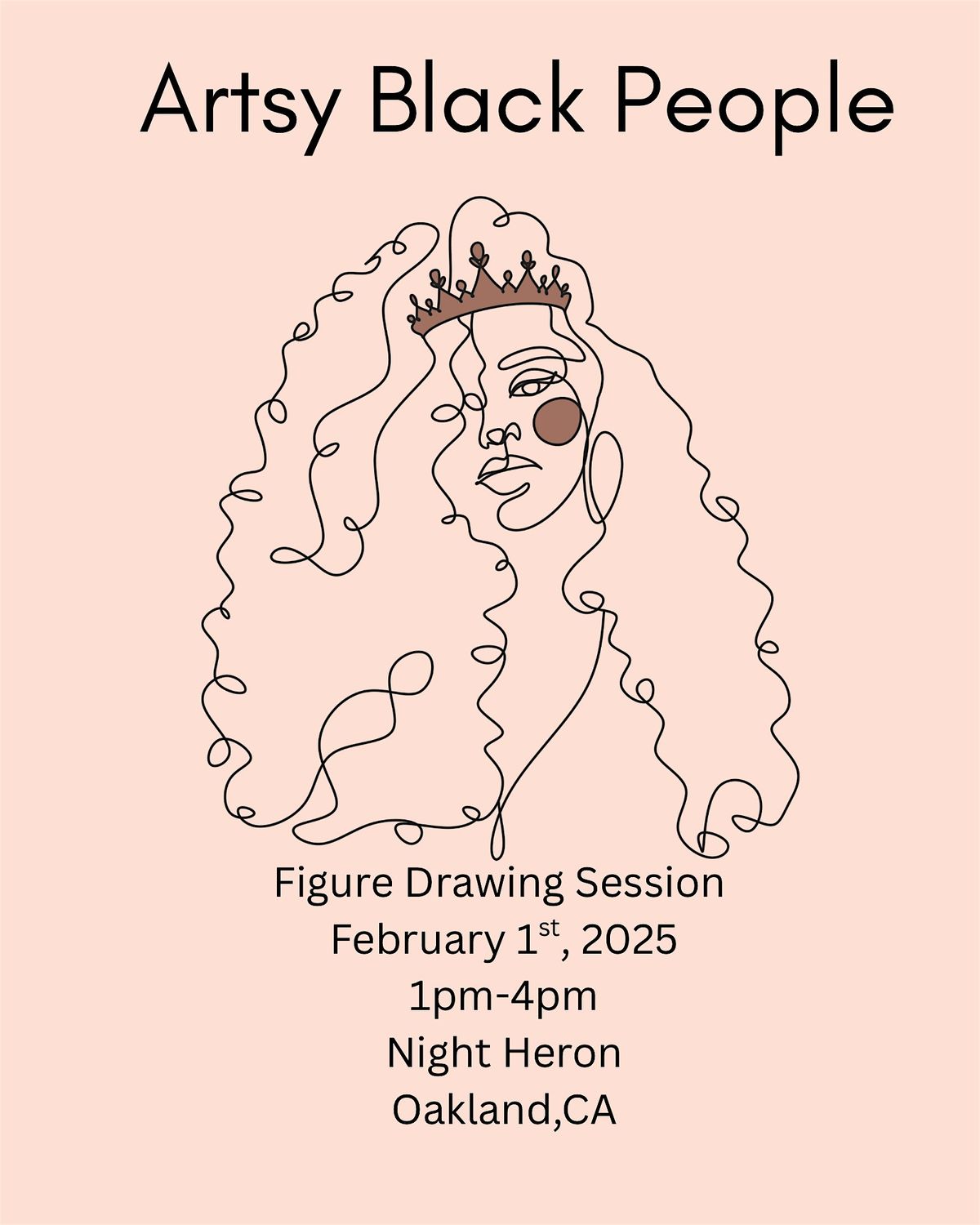 **February 1st** from **1:00pm to 4pm at Night Heron** in Oakland, California. This gathering is for Black artists of all levels to come together, create, and connect in a supportive and inspiring space.