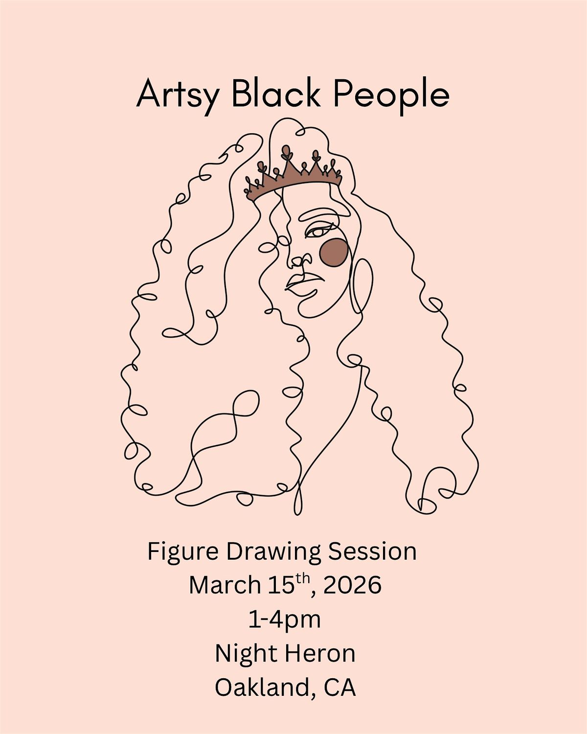 **March 15th** from **1:00pm to 4pm at Night Heron** in Oakland, California. This gathering is for Black Artists of all levels to come together, create, and connect in a supportive and inspiring space.