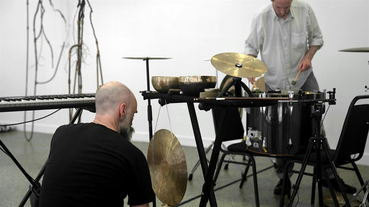 David Donohoe and David Lacey have a longstanding practice of performance, improvisation, composition and recording. Utilising resonant metals, wood, objects and electronics, their music foregrounds space & texture, gesture & silence, flow & discontinuity. They have released two albums as a duo, Noctules (Fort Evil Fruit, 2021) and Obsequio (Verz, 2022) and are currently mixing a new album as a trio with Phil Maguire. This performance sees Donohoe and Lacey in free improvisation within the gallery space, responding to and expanding upon the sonic and visual language of .