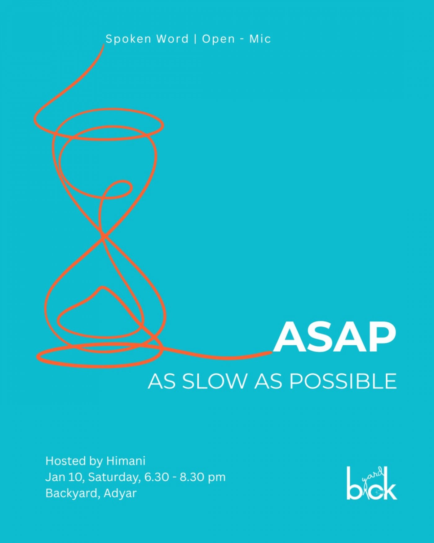 ASAP is a slow, open-mic style sharing circle that invites you to pause and breathe. This is not a performance space, but a space to share thoughts, stories, reflections, or half-formed ideas around slowing down.