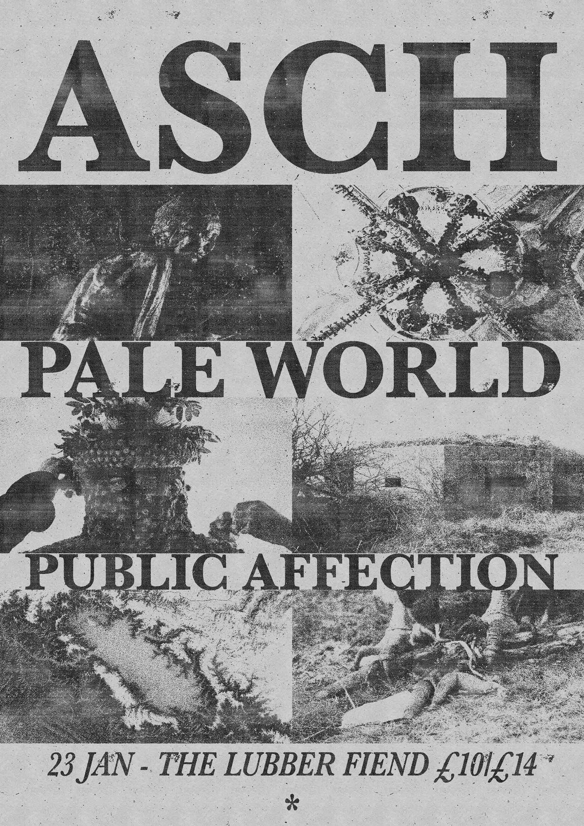 ASCH is a noise project featuring the people behind harsh noise project Svartvit and the label/promoter, Charnel Ground. After a number of live performances in the Netherlands, ASCH play in the UK for the first time. Supports from Pale World and Public Affection.