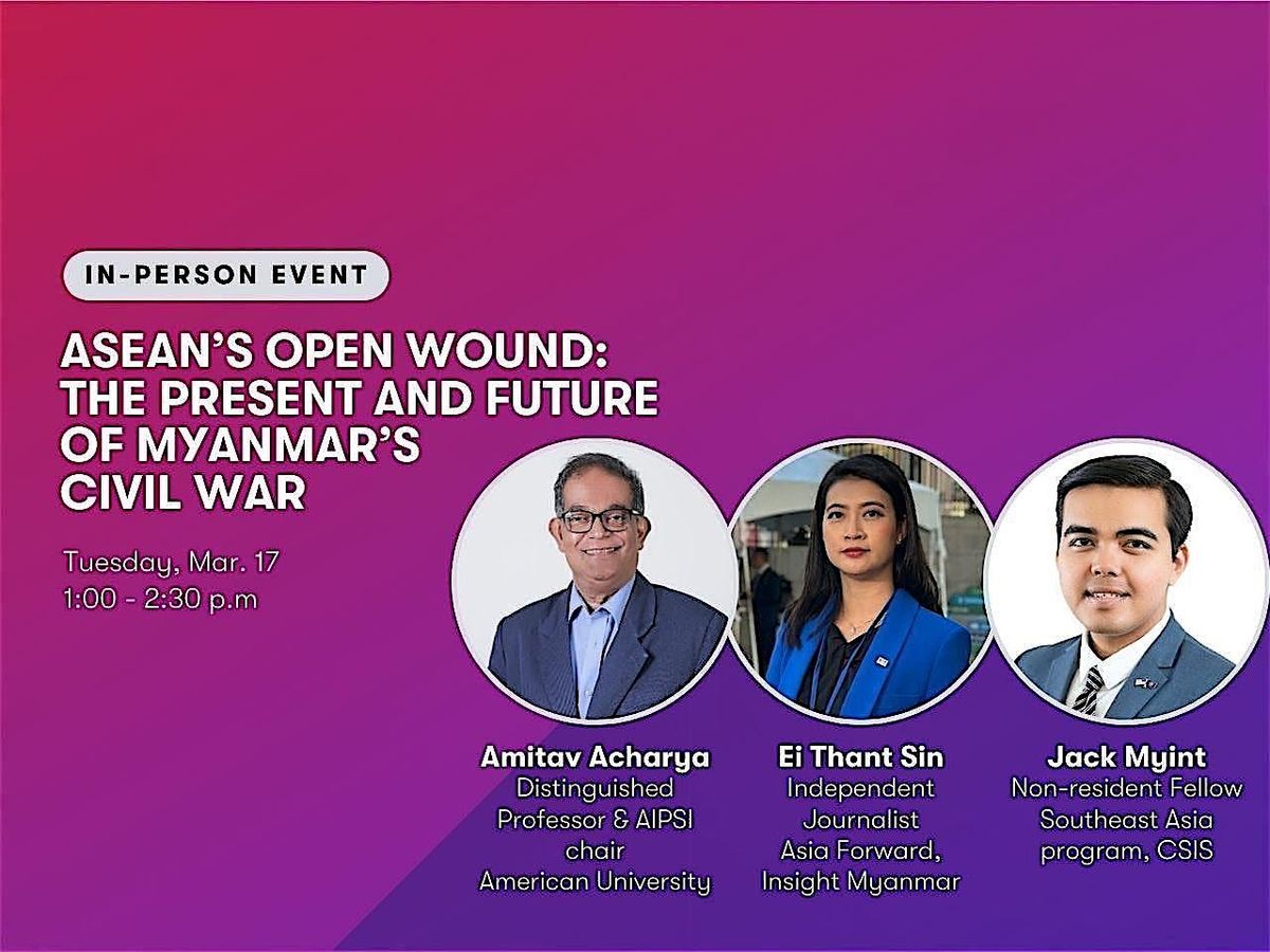 The panel brings together experts from the region, including Ei Thant Sin, an independent journalist and veteran Myanmar reporter; Hla Hpone “Jack” Myint, a non-resident fellow at CSIS and Southeast Asia director at USABC; and SIS distinguished professor Amitav Acharya. A Q&A session will follow the discussion.