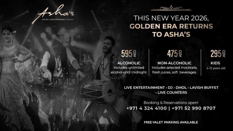 - Ring in the New Year at Asha’s, where style, flavour, and celebration come together for an unforgettable night. Enjoy a delicious buffet with live counters, unlimited drinks until midnight, soulful entertainment, and a DJ keeping the party alive until 3 AM. Step into 2025 with great food, vibrant energy, and unforgettable vibes, only at Asha’s.