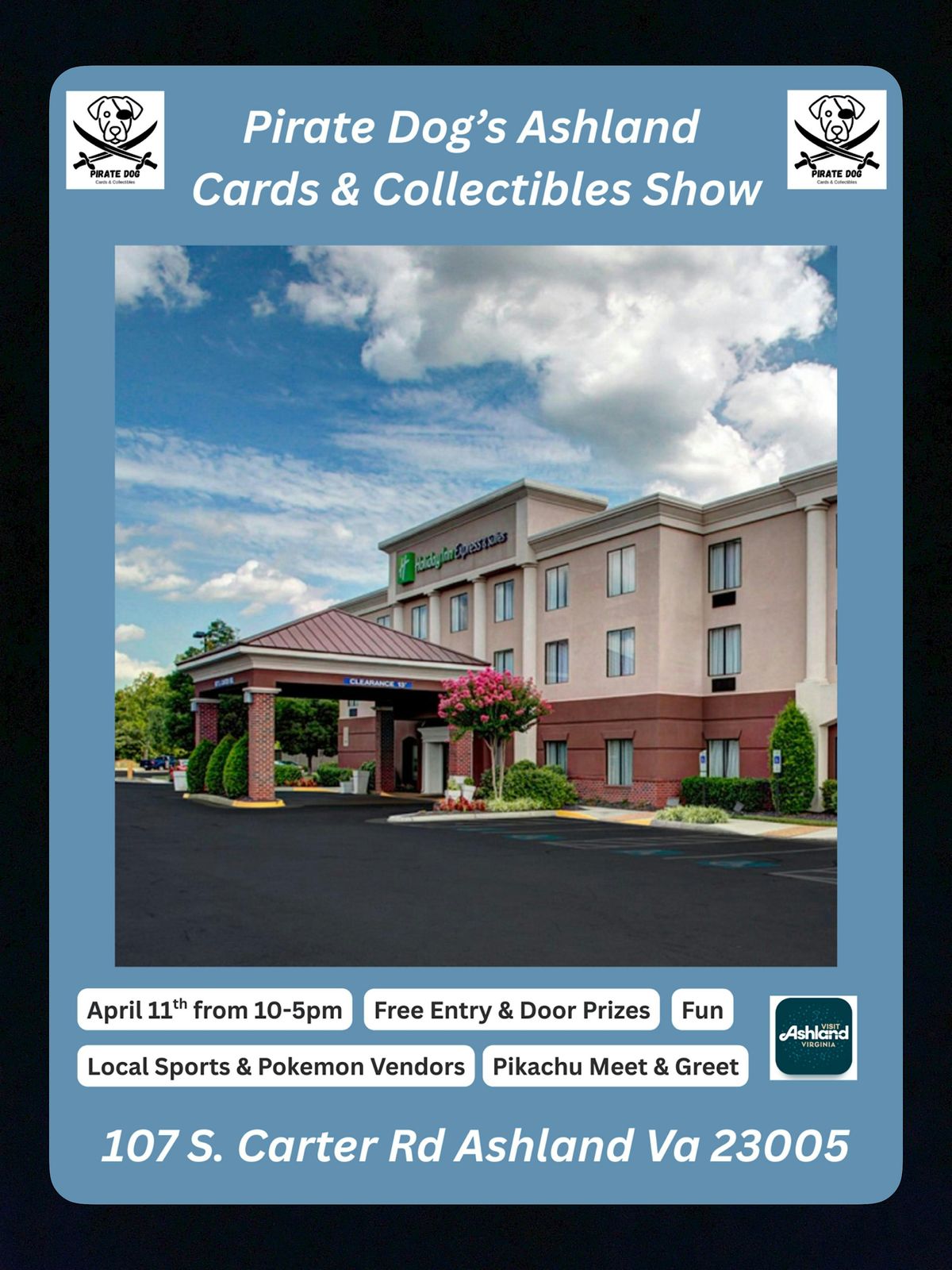 Join the local community and come out to the Ashland Pirate Dog Exclusive Sports Cards & Collectibles Show! We return with another event this time at the Holiday Inn & Suites for an amazing show on Saturday, April 11thfrom 10:00 AM to 5:00 PM! Whether you're a seasoned collector or just starting out, this event is perfect for all enthusiasts. Browse through a wide selection of Tobacco, Vintage and Modern Cards, unopened Wax Packs, hobby supplies and more! Meet fellow collectors, make a trade or two at our dedicated traders table and maybe even find that rare treasure you've been searching for. Who doesn't love a cardshow! No tickets necessary for this free family event. Pet friendly venue so bring your friend along for a picture! See you there!