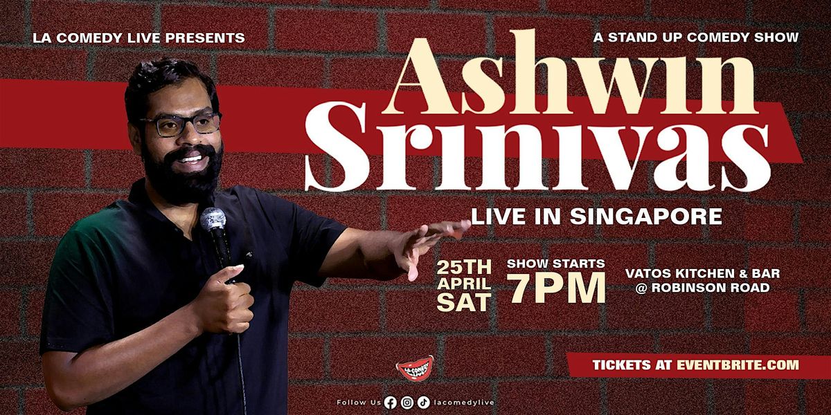 India’s comedy sensation Ashwin Srinivas brings his hit comedy set to Singapore on Saturday, April 25, 2026 at Vatos Kitchen & Bar. Get ready for a night of sharp, relatable, and effortlessly funny stand-up!