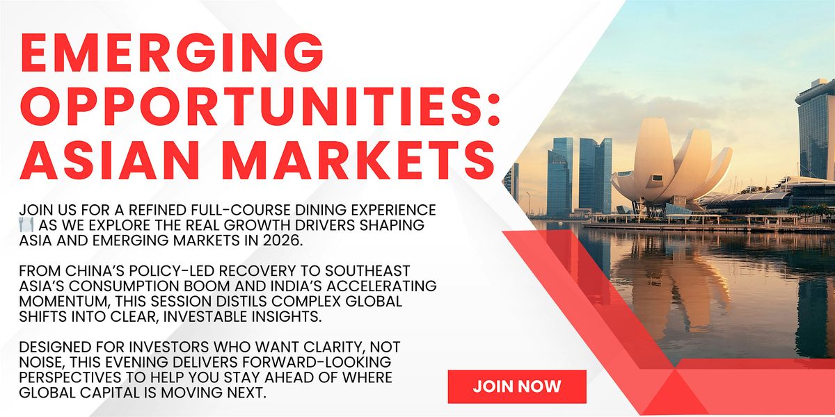 Join us for a refined full-course dining experience ๐ฝ๏ธ as we explore the real growth drivers shaping Asia and emerging markets in 2026. From Chinaโs policy-led recovery to Southeast Asiaโs consumption boom and Indiaโs accelerating momentum, this session distils complex global shifts into clear, investable insights.