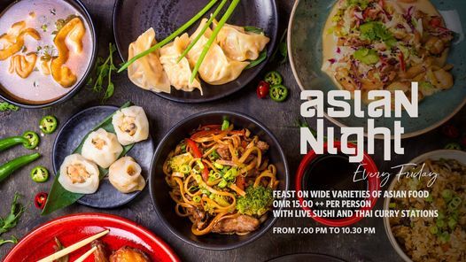 Weekends are for fun and food fiesta! Join us at Taybat Restaurant every Friday for Asian night. Enjoy live sushi and Thai curry stations with a selection of seafood, chicken, beef, vegetables, and plenty of other buffet favourites. Not to miss the wide selection of desserts!