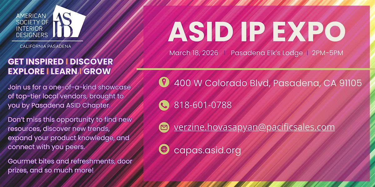 Mark your calendars for March 18 as ASID Pasadena hosts its Industry Partner Expo at the Pasadena Elks Lodge. This dynamic event brings together Industry Partners and designers from Pasadena and surrounding communities for face-to-face connection and discovery.