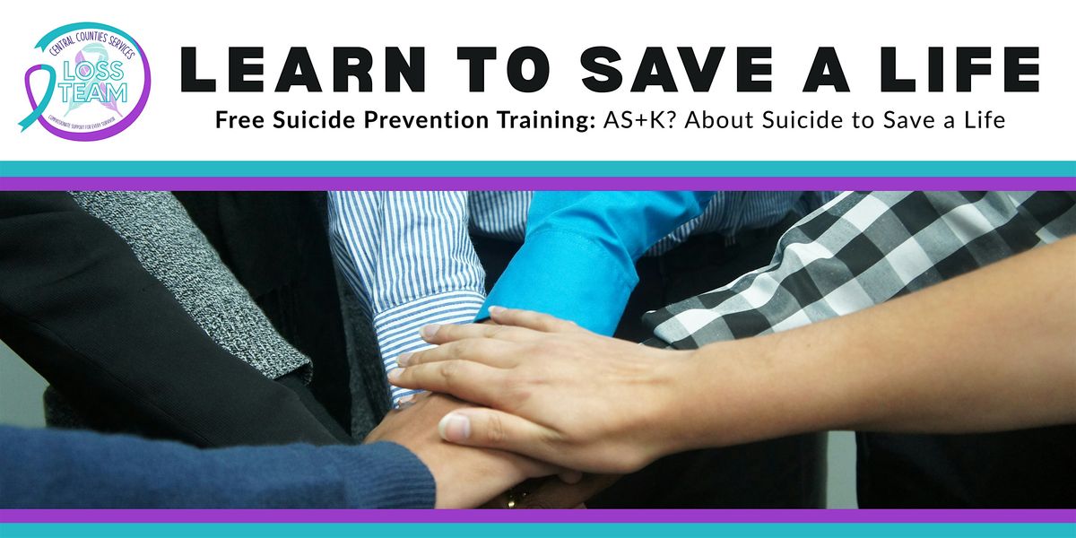 The Central Counties Services HEAL/LOSS Program is committed to strengthening our community’s response to suicide by offering ongoing AS+K trainings throughout the year. Check back often to find a training that fits your schedule.