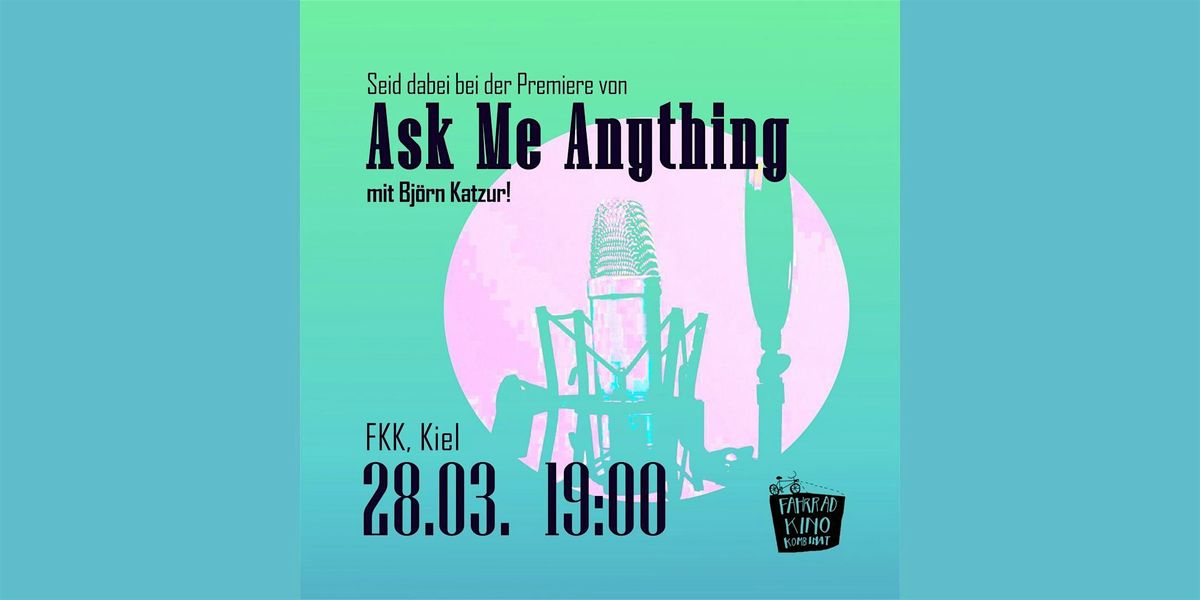 Das FKK und Björn Katzur präsentieren die erste Ask Me Anything LIVE Veranstaltung in Kiel am 28. März! Bekannt aus Reddit und Co.About this Event