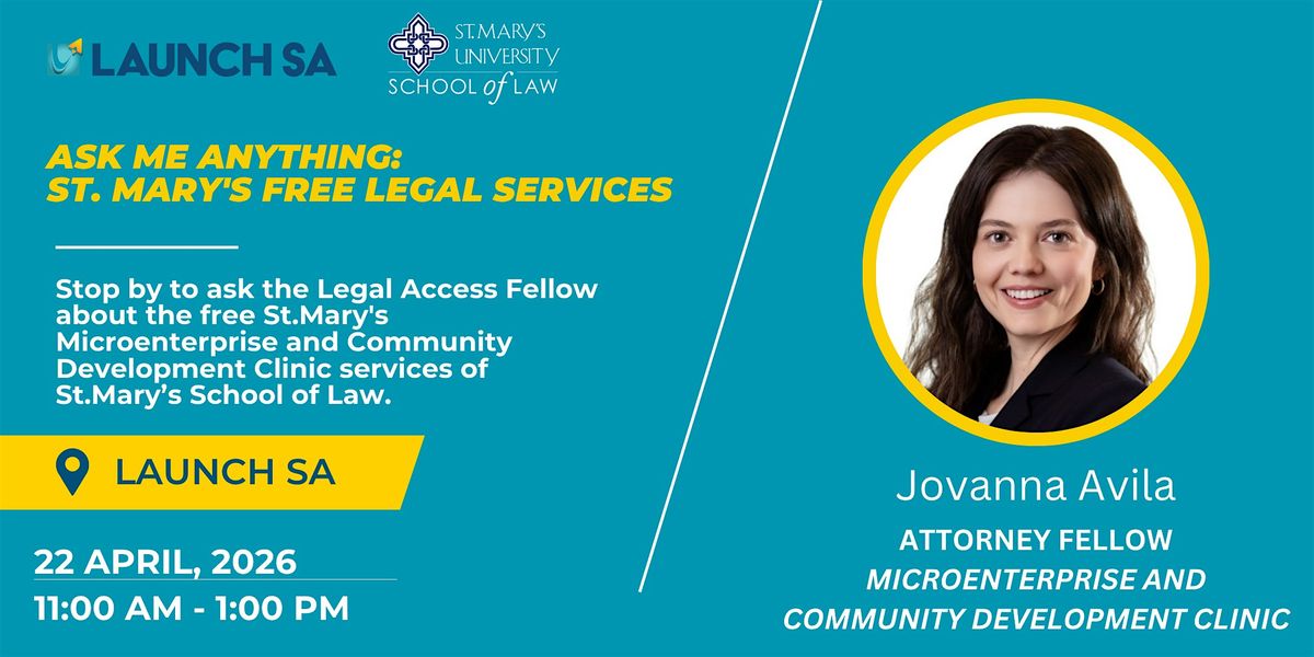 Stop by to ask the Attorney Fellow about the free St.Mary's Microenterprise and Community Development Clinic services of St.Mary’s School of Law.