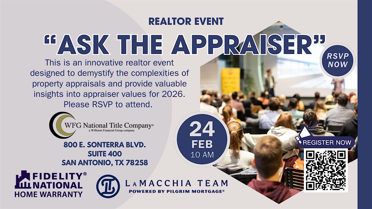This event brings together seasoned and local realtors and an appraiser. Our appraiser will provide appraisal insights and updates to look for in the summer of 2026. Helping realtors educate their buyers and sellers on home appraisals. Attendees can ask questions, engage in discussions, and better understand the appraisal process. Attending "Ask The Appraiser," you will be equipped with the knowledge needed to make informed decisions this spring and summer!