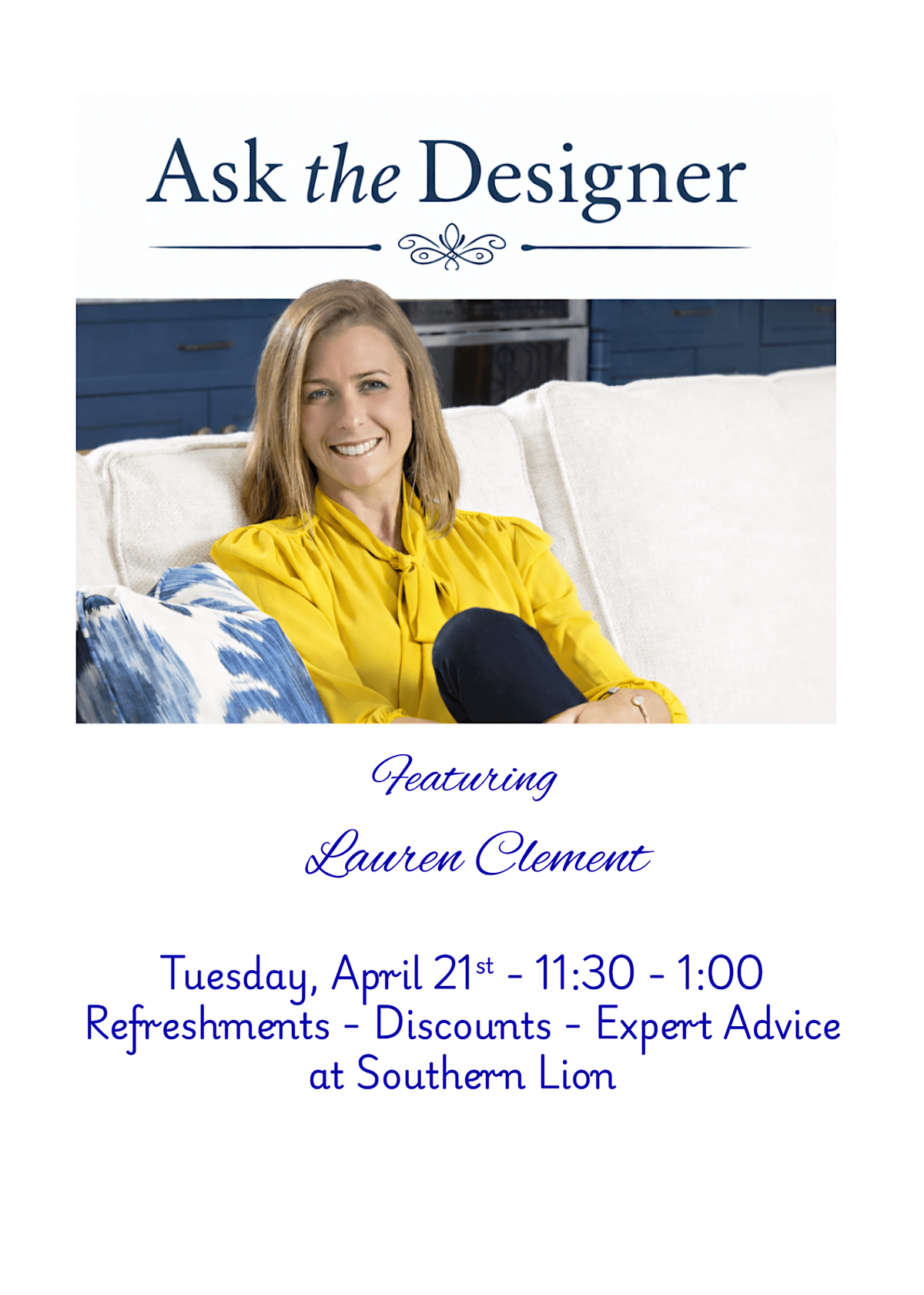 Join us on April 21 for our Ask the Designer seminar, where awardwinning designer Lauren