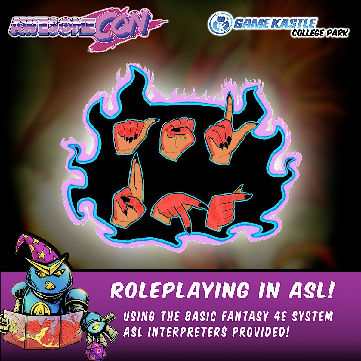 Brave yourself into the world of fantasy using American Sign Language! Basic Fantasy 4e is a old school revival where creativity surpass rules. This is an one-shot session where you will delve into deep dungeon for gold and glory. All players are welcome, regardless of experience. Everything, including the ASL interpreters, will be provided.