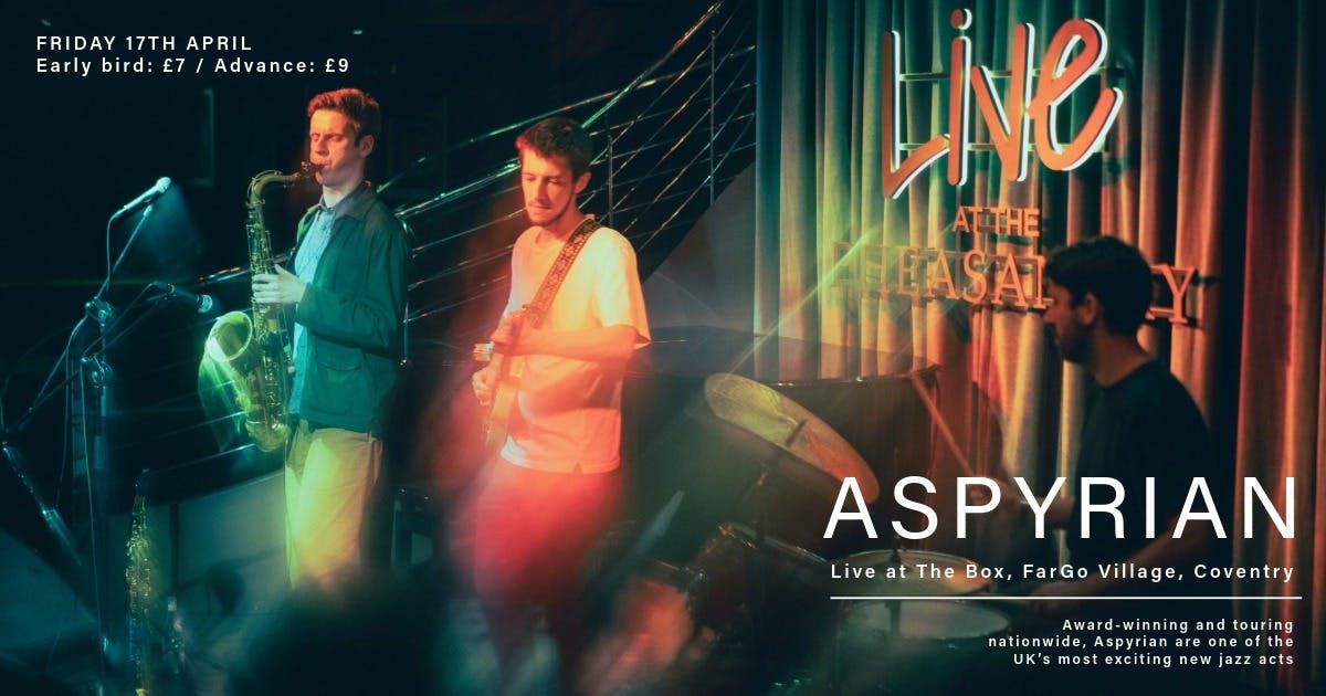 Aspryian are linking up with us for a live set at The Box on Friday 17 April.With three album releases, two national tours, and two awards from Help Musicians, Aspyrian are fast gaining a reputation as one of the most ambitious new acts on the UK jazz scene.