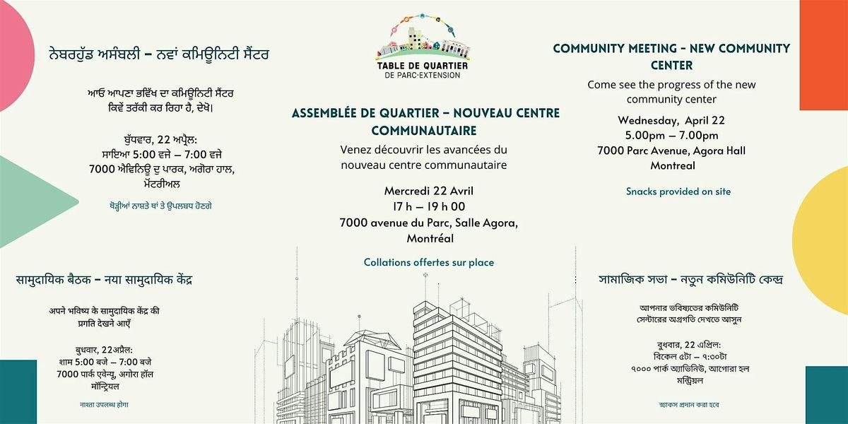 Join us for a neighbourhood assembly to discover the latest developments of the New Parc-Extension Community Centre!