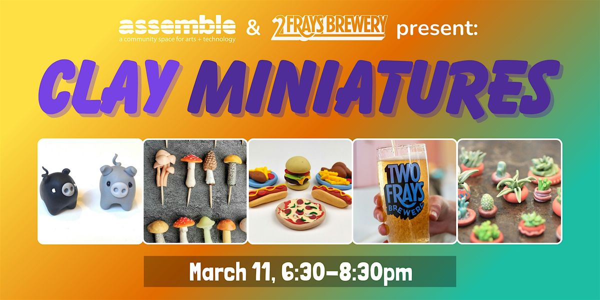 This month we are sculpting with clay to create miniatures of our favorite foods, animals, characters, and more! We'll be using clay that hardens in the oven, and you'll go home with a completed assembly of pieces that you made yourself! Beginners and experienced sculptors welcome!