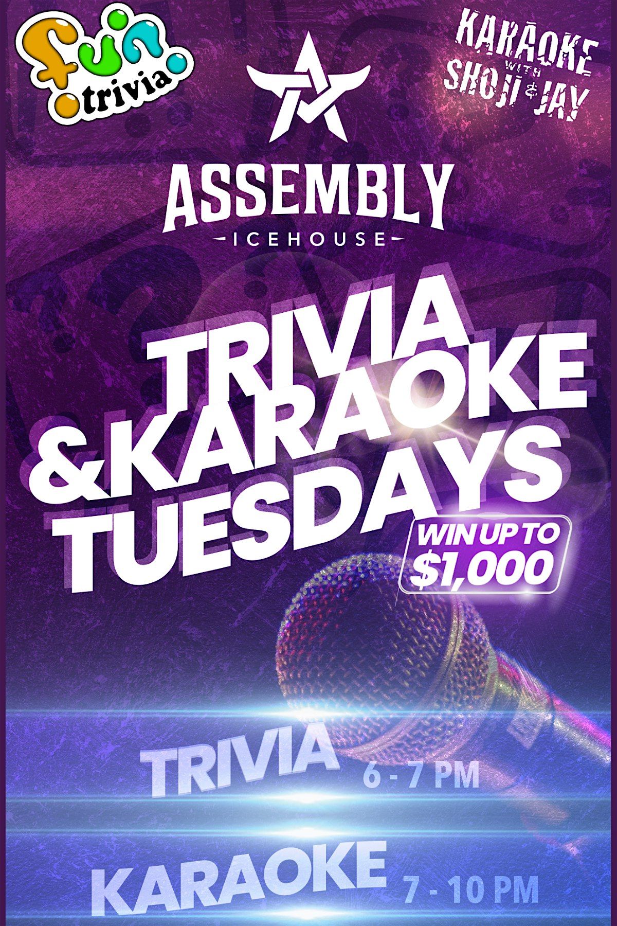Join us every Tuesday for trivia from 6–7 PM and karaoke from 7–10 PM. Compete, sing, and win prizes up to $1,000!