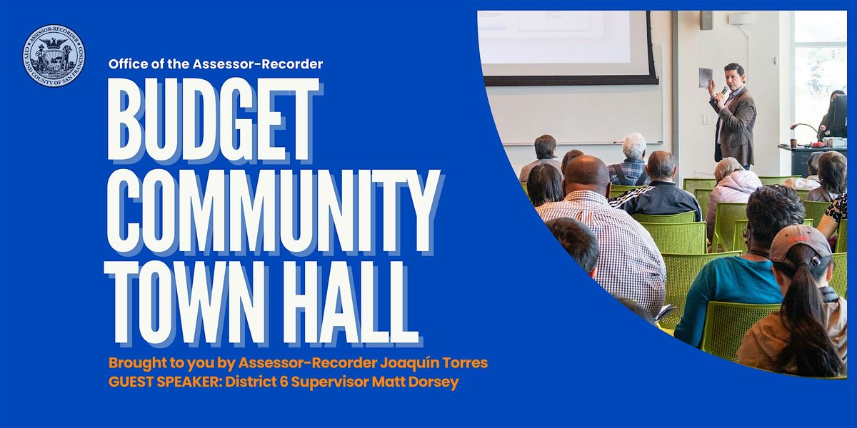 This is an opportunity to learn about the Office's budget priorities for the next two years, understand your property assessment, learn about Proposition 13, 19 (base year value and intergenerational property transfers) and assessment appeals as well as meet your Assessor and ask questions.