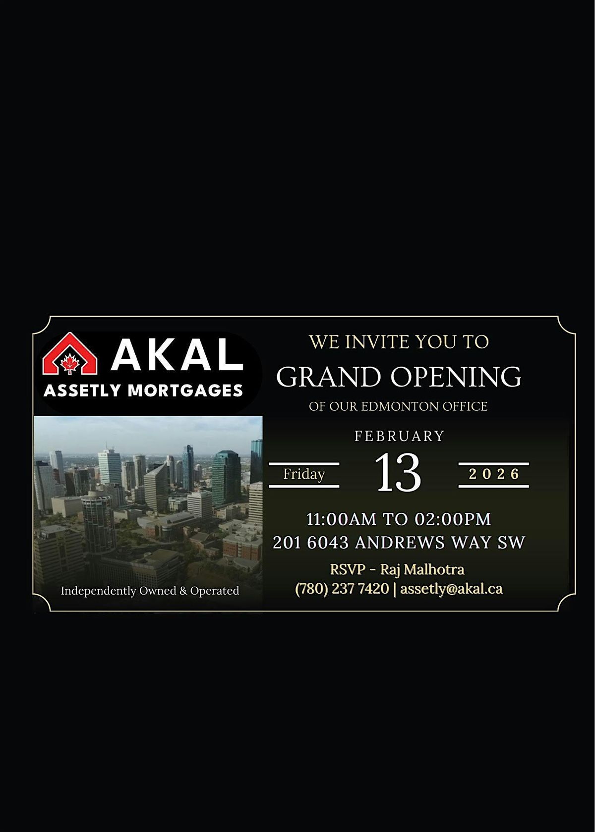 We're super excited to welcome you in person to celebrate the launch of our brand-new office in Edmonton. Come enjoy refreshments, meet the team, and discover how Assetly Mortgages can help you with your home financing needs. It's all about good vibes and great connections—don't miss out! Delicious refreshments will be provided! Dress buisness casual.
